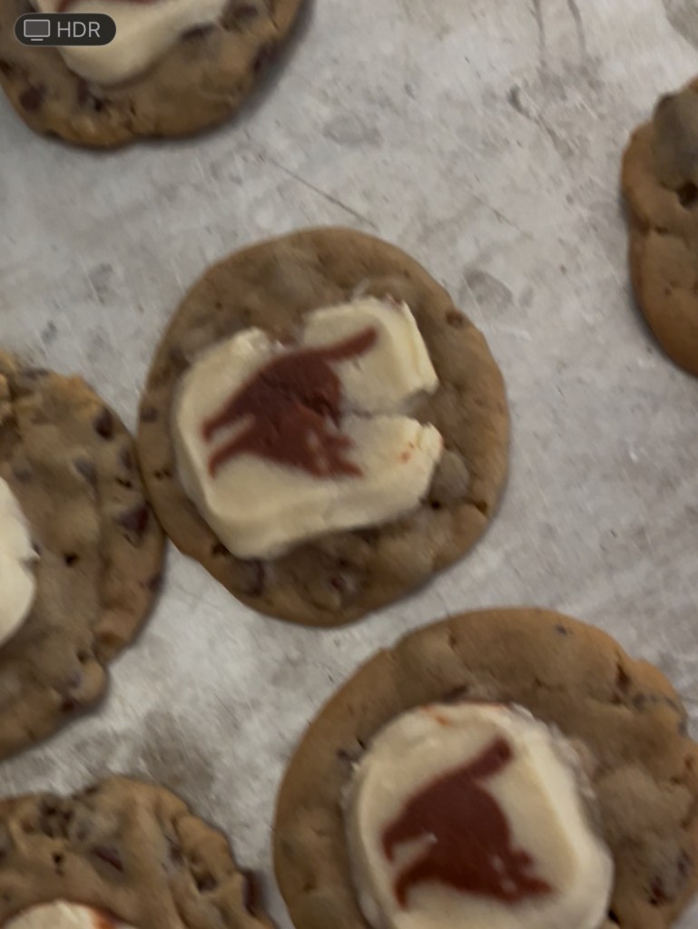 THIRD you are gonna want to Place the Halloween cookie on the middle of the chocolate chip cookie before its baked